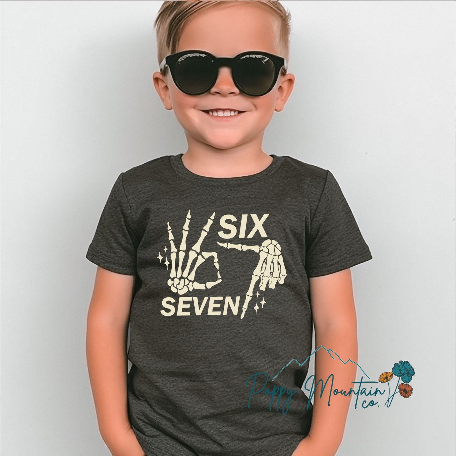 - SHOWN HERE: 6 7 Skeleton Hands on Comfort Colors Pepper Short Sleeve Tee