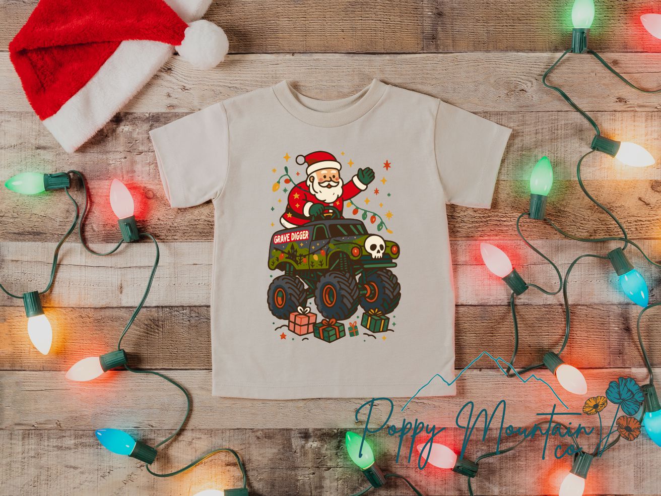 - SHOWN HERE: KIDS Grave Digger Truck Christmas on Bella Canvas Natural Short Sleeve Tee