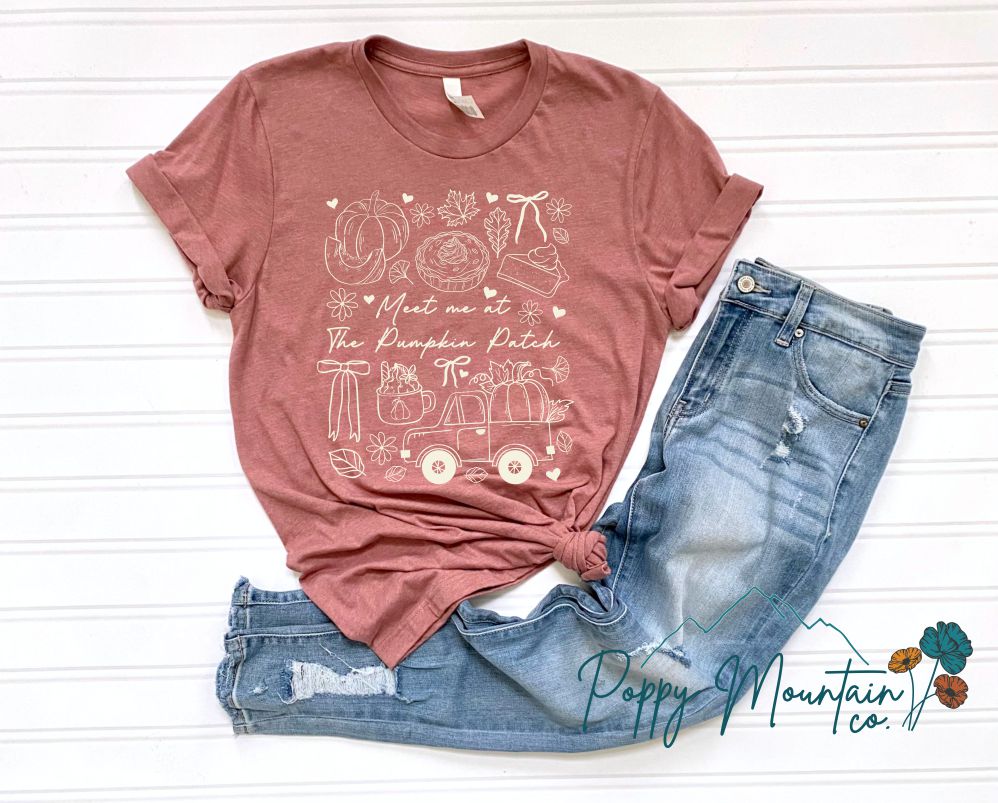 - SHOWN HERE: KIDS Take Me To The Pumpkin Patch Sketch on Bella Canvas Mauve Short Sleeve Tee