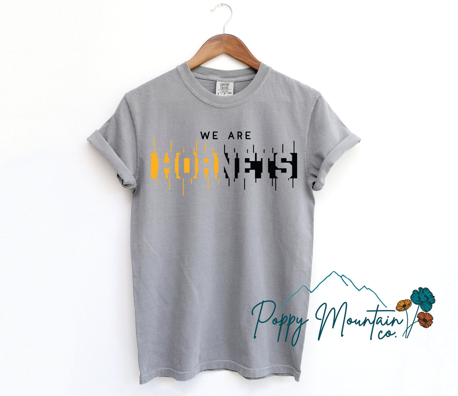 - SHOWN HERE: KIDS We are Hornets on Comfort Colors Grey Short Sleeve Tee